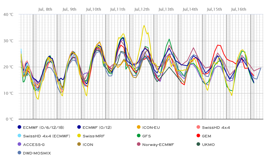 Sākot ar nedēļas vidu, no D, DR mūsu virzienā ieplūdīs karsta gaisa masa, kas līdz aptuveni svētdienai gādās par ļoti siltu un karstu laiku. Prognozes ir vienisprātis, ka siltākais laiks saglabāsies uz D, DA no mums. Pastāv iespēja, ka izteikts karstums būs īslaicīgs uz 1 - 2 dienām un nedēļas nogalē, it sevišķi Kurzemē, var nebūt siltāks par +20 ... +27 C, bet prognozes vēl ir mainīgas, jo nav skaidri zināms, cik liela būs karstuma ietekme pēc nepilnas nedēļas (sestdienai prognozes variē starp +20 C un +35 C). Ticams, ka ceturtdiena varētu būt karstākā diena, kad valsts centrālajā daļā abi galvenie klimatiskie modeļi paredz +30 ... +33 C, bet vidēji +25 ... +28 C daudzviet Zemgalē un Latgalē sagaidāmi 4 - 5 dienas pēc kārtas.