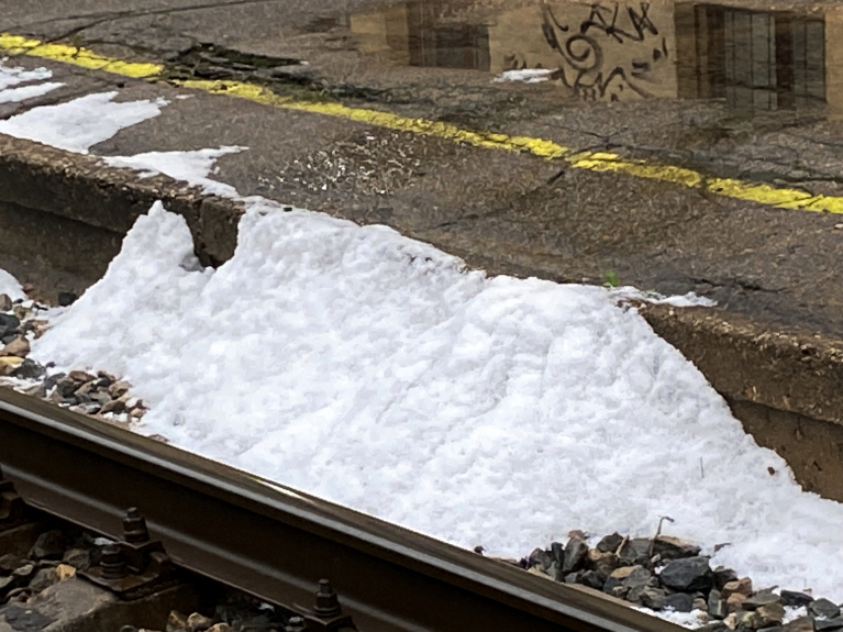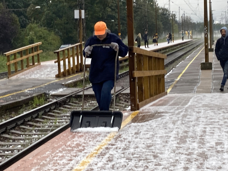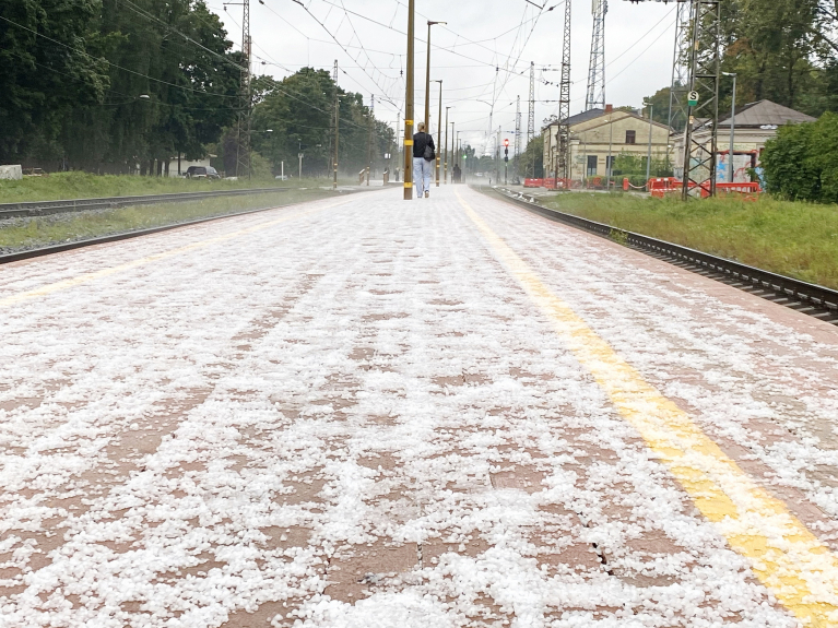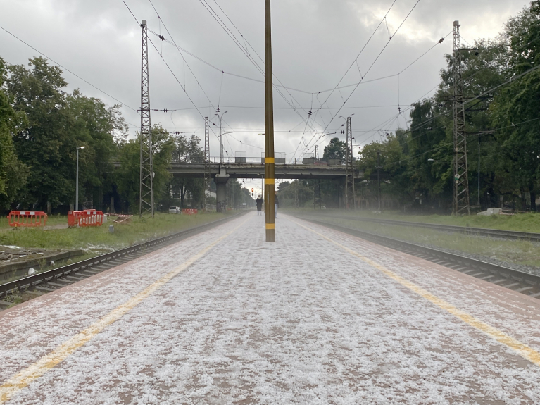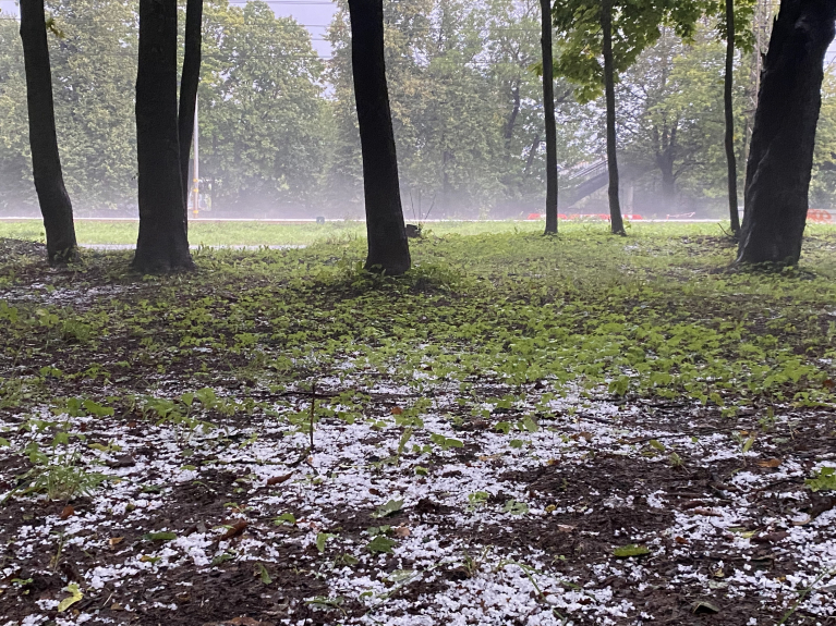 Līča efekta nepārtraukti negaisi ar specigam lietusgazem, zibeņiem un krusu naktī no 25 uz 26 augustu, vairākas specigas un loti tuvas zibens izlādes, lietusgazes turpinājas ari dienas sākumā, nolija vairāk ka puse mēneša normas. Foto ir Zasulauka stacijas apkartne pēc nakts un rīta krusas negaisiem.