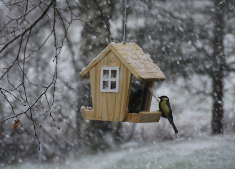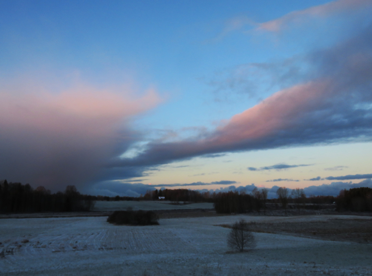 Ap divpadsmitiem sāka snigt un sniga stundas trīs bez apstājas. Sniegs mitrs un smags, lauž priežu zarus. Sniega segas biezums starp 4-5 cm, kur vēsas virsmas, tur biezāks. Uz mazu mirklīti parādījās saule, bet jauni līča mākoņi ir klāt un snigšana turpinās. Pāris reizes noraustījās elektrība, cerams, ka nepazudīs.