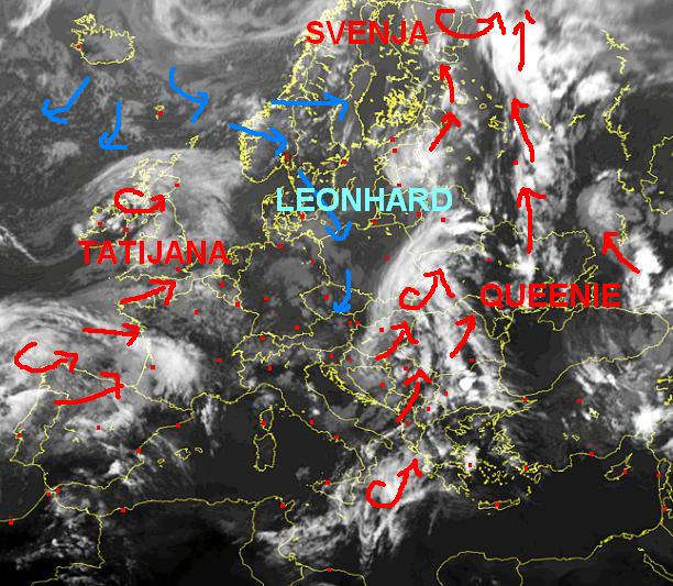 QUEENIE 2 ciklons ar lietus mākoņiem aiziet prom uz ZA pusi, Latvijā laiks nomierinās- lai gan visai vēsīgs viscaur ir...