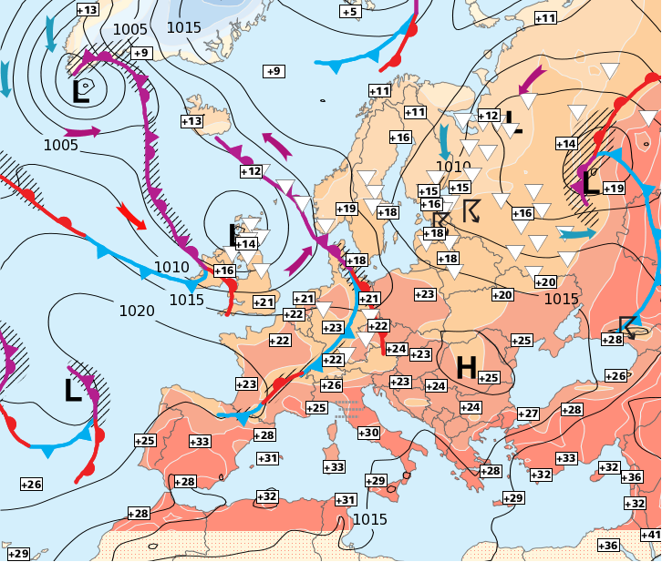 Sat24.com attēlos - virs pavadoņa iefiksētās mākoņu segas - ir ar manu roku pārzīmēts mākoņu kustības virziens, kas reizē norāda arī gaisa masu kustību. Sarkanās bultas - silts gaiss, gaiši zilās - vēss; tumši zilās - izteikts sals. Ciklonu centri apzīmēti ar riņķa veida bultām. Pie cikloniem un anticikloniem - ir Vācijas meteoinstitūta iedotie vārdi, kurus lieto visā Eiropā un aiz tās robežām.