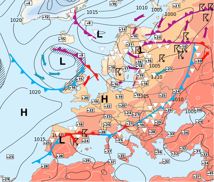 Sat24.com attēlos - virs pavadoņa iefiksētās mākoņu segas - ir ar manu roku pārzīmēts mākoņu kustības virziens, kas reizē norāda arī gaisa masu kustību. Sarkanās bultas - silts gaiss, gaiši zilās - vēss; tumši zilās - izteikts sals. Ciklonu centri apzīmēti ar riņķa veida bultām. Pie cikloniem un anticikloniem - ir Vācijas meteoinstitūta iedotie vārdi, kurus lieto visā Eiropā un aiz tās robežām.